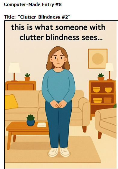During the 2025 CLA Convention in Alexandria, VA, members voted for the top two hand-drawn graphic depictions of Clutter-Blindness and the top (one) computer-drawn depiction of Clutter-Blindness. Out of 8 entries, these are the artists and entries that received the top votes: